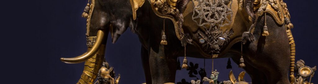 This year one of Waddesdon’s greatest treasures, a remarkable elephant automaton by Hubert Martinet, has undergone a programme of conservation work. This is the first time in living memory that the automaton has undergone conservation level surface-cleaning, in addition to its once-a-decade mechanical overhaul, and it gave us the opportunity to investigate the materials and their history, the mechanism and even the musical box.