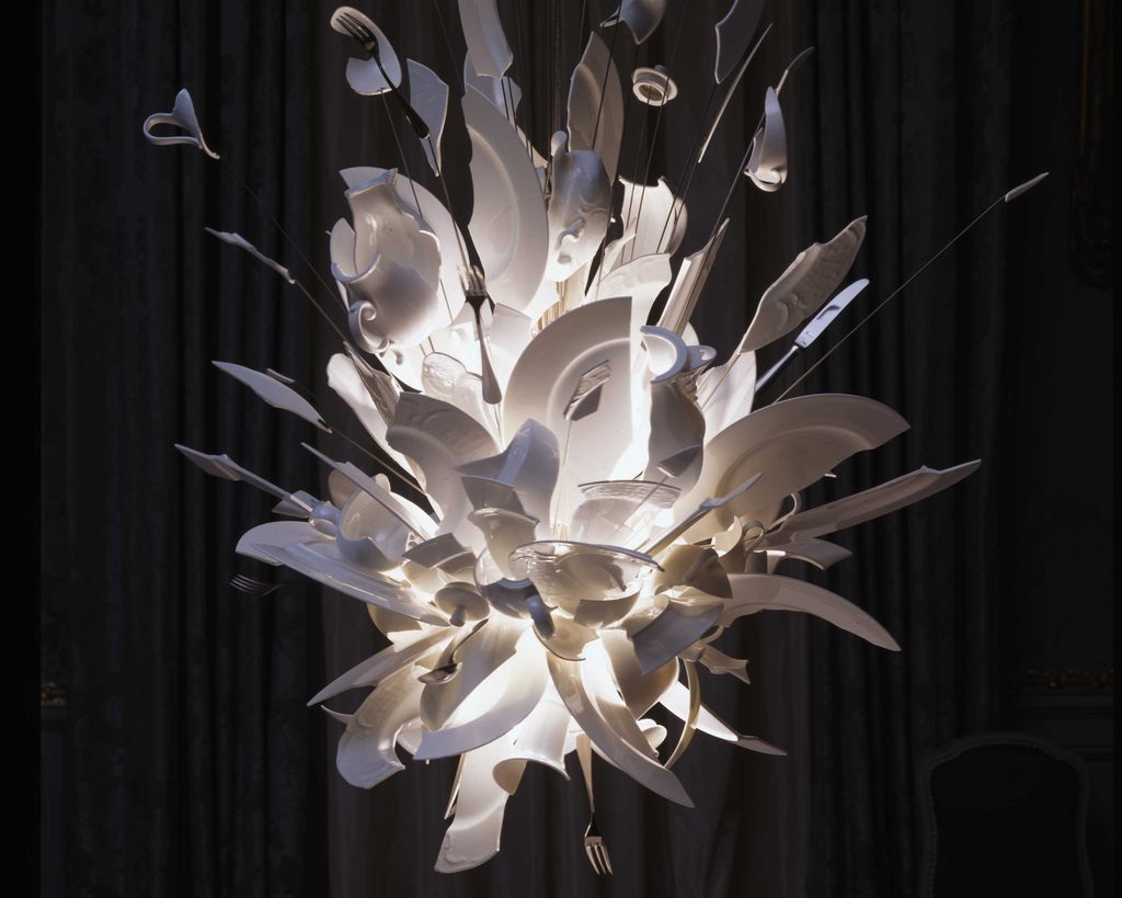 This astonishing chandelier, made of broken porcelain and cutlery, was commissioned for the Blue Dining Room in 2003. German lighting designer, Ingo Maurer, and his manufacturing team dropped the ceramics on the floor or smashed them with a hammer and then arranged them.