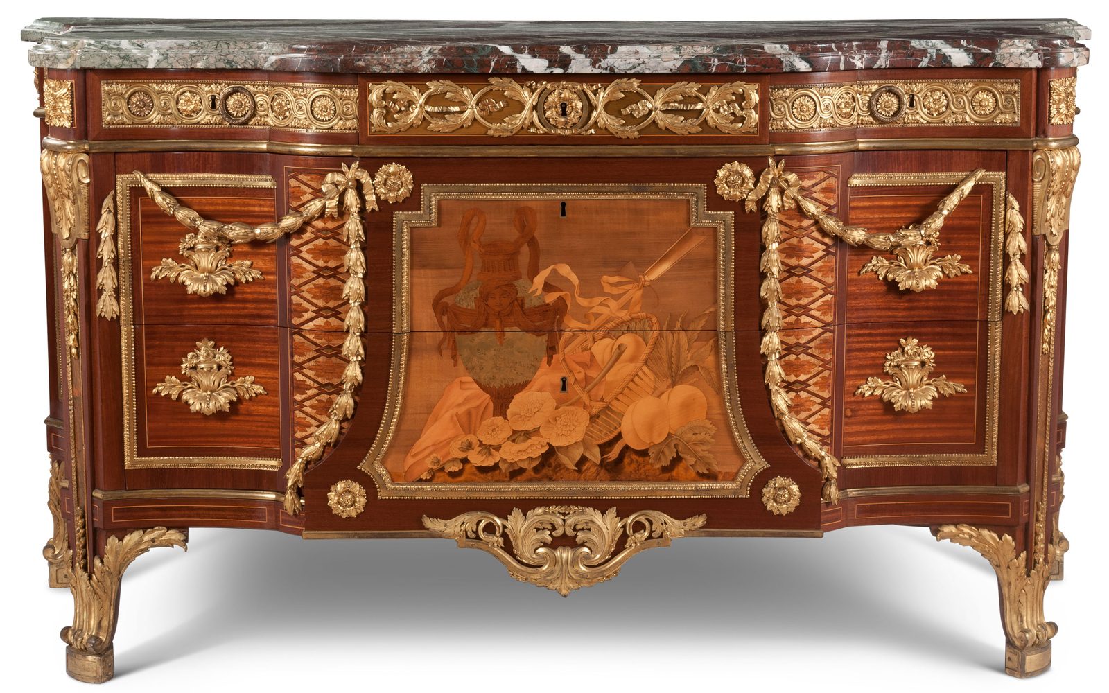 See this chest of drawers made by the celebrated cabinetmaker Jean-Henri Riesener in the Red Drawing Room.