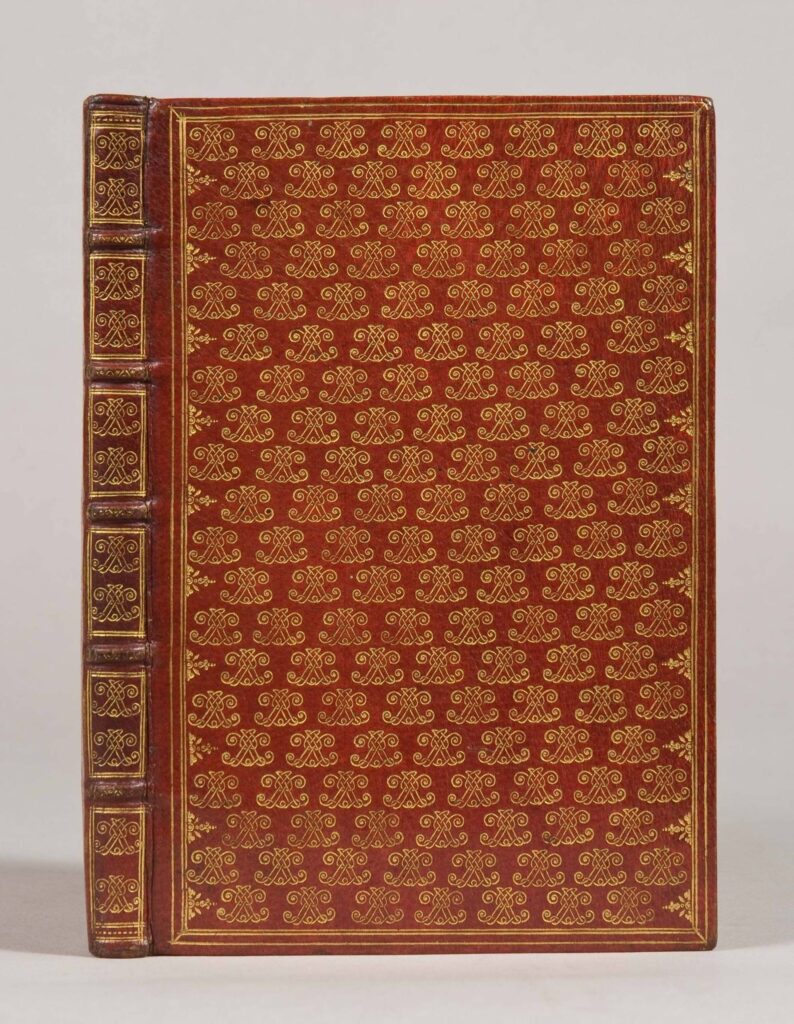 La Guirlande de Julie, 1641, is a romantic manuscript anthologie of poems partly written and compiled by the Duc de Montausier de Saint-Maure to woo his future wife, Julie Lucine d’Angennes. This is one of the two original copies created for the young couple, decorated with Julie’s initials. These poems were later printed and proved to be very popular with numerous editions and reprints.